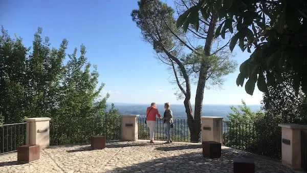 Die Altstadt von Fara Sabina ist auf jeden Fall einen Besuch wert. Zwar wirkt sie heute teils wie ausgestorben, weil viele Bewohner wegen der besseren Verkehrsanbindung nach Passo Corese gezogen sind, doch es lohnt sich, durch die blitzsauberen Gässchen zu schlendern und das Flair des mittelalterlichen Örtchens zu genießen. Vor allem aber lockt der Ort durch seine mitreißenden Panoramen ins Sabinerland auf der nördlichen und in die Tiberebene nach Rom hin im Süden. Oben im Ort angekommen, trifft man auf eine gemütliche Bar mit der Möglichkeit, draußen zu sitzen und beim Cappuccino den Blick bis nach Rom schweifen zu lassen. Sehr empfehlenswert! Für Sportler zu Rad oder zu Fuß darüber hinaus eine Anstrengung wert!
