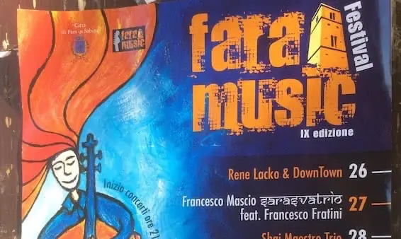Jedes Jahr im Juli findet in der Altstadt von Fara Sabina das Sommer Jazz Festival statt, ein Highlight für Jazz-Fans aus aller Welt. Das Festival gehört zur Summer Festival School, die in jedem Sommer viele Jazzmusiker von weither in die Sabiner Berge zieht. Zum Abschluss finden eine Woche lang in der wunderbar illuminierten Altstadt Konzerte, Flohmärkte, Basare, Events statt. Über die Festivalwoche informiert die Seite www.faramusic.it!