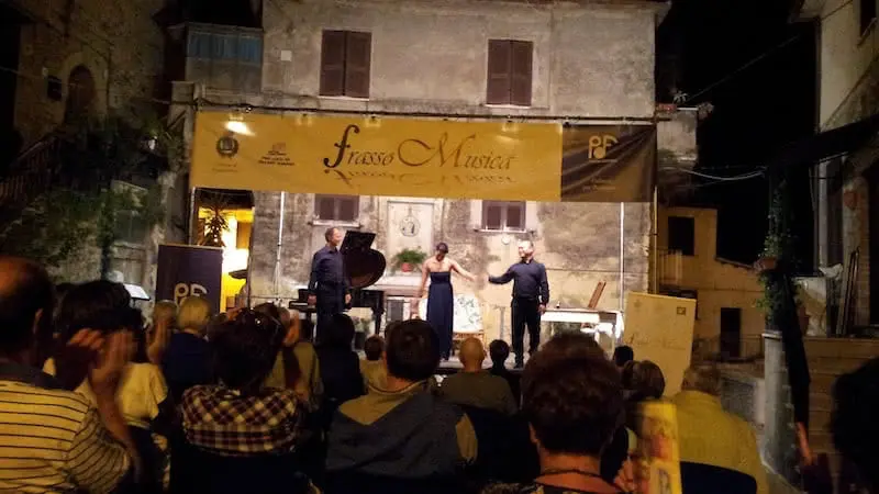 Auch im benachbarten Frasso Sabino findet alljährlich ein Musikfestival statt, bei dem (kostenlos!!!) Opern- und Klassikfans auf ihre Kosten kommen. Im August treten dort Spitzensänger und -Orchester aus Rom und anderen italienischen Städten sowie internationale Künstler auf und ziehen Musikfans aus der Region bis nach Rom dorthin. Auch in Talocci, Toffia und vielen anderen Orten finden insbesondere im Sommer Feste statt, auf denen meist kostenlos Musik vom feinsten dargeboten wird. Wer einmal den "Barbier von Sevilla" auf dem mittelalterlichen Marktplatz von Frasso erlebt hat, kommt immer wieder!