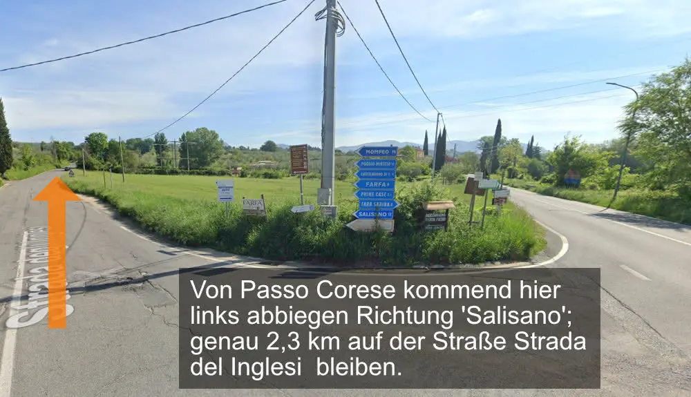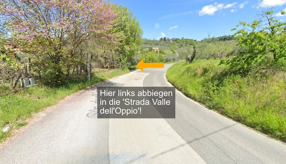 Bei Bedarf können wir Ihnen eine genaue Anfahrtbeschreibung zusenden. Bei Google Maps finden Sie uns sehr einfach, indem Sie "Fara Sabina, Strada Valle dell'Oppio" eingeben. Die Koordinaten für Ihr Navigationssystem lauten 42.206221 / 12.694187. Von Passo Corese aus finden Sie über die 'Via Farense' (SP41) und die 'Strada degli Inglesi' schnell zu unserem Haus. In der Bilderserie sehen Sie die letzten 2,5km zum Haus (Bilder bitte rechts anklicken/antippen).