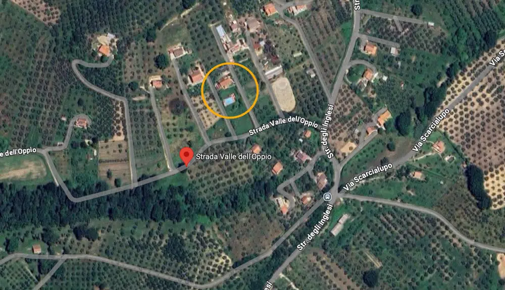 Auf dem obigen Bild können Sie die Lage unseres Hauses und Grundstücks in der Localitá Bacelli erkennen. Wir liegen sehr verkehrsgünstig: zwar ist die Umgebung sehr ruhig und etwas abgelegen, zugleich ist aber die nächste Autobahnauffahrt nur 11,5 Km entfernt (Autostrada Roma Nord). Die S-Bahn nach Rom finden Sie (in Passo Corese) bereits nach 8 Km. Weitere Informationen finden Sie | HIER |.